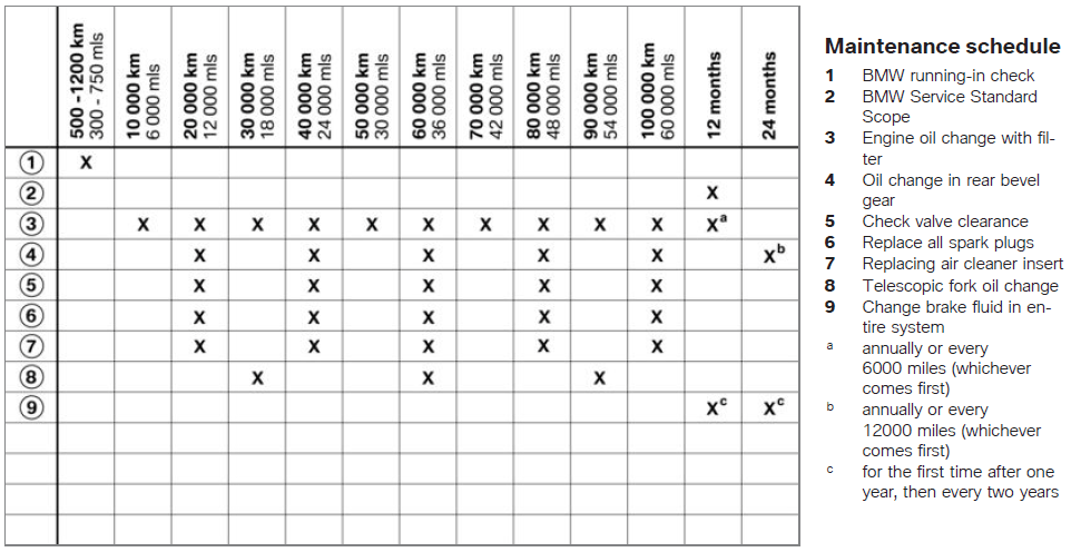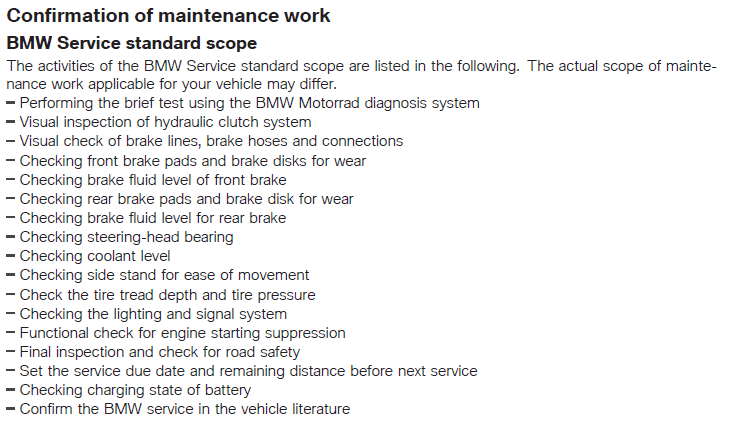 A service interval display is part of the dynamic maintenance strategy. Irrespective of the mileage, one maintenance appointment per year is required for all BMW motorcycles. For those who travel a lot, there are also mileage-dependent components alongside the compulsory annual appointment. This means that additional maintenance is required when the mileage exceeds 10,000 kilometres a year. The customer is informed that the bike is due for maintenance in good time via the multifunction display. [BMW Motorrad USA]